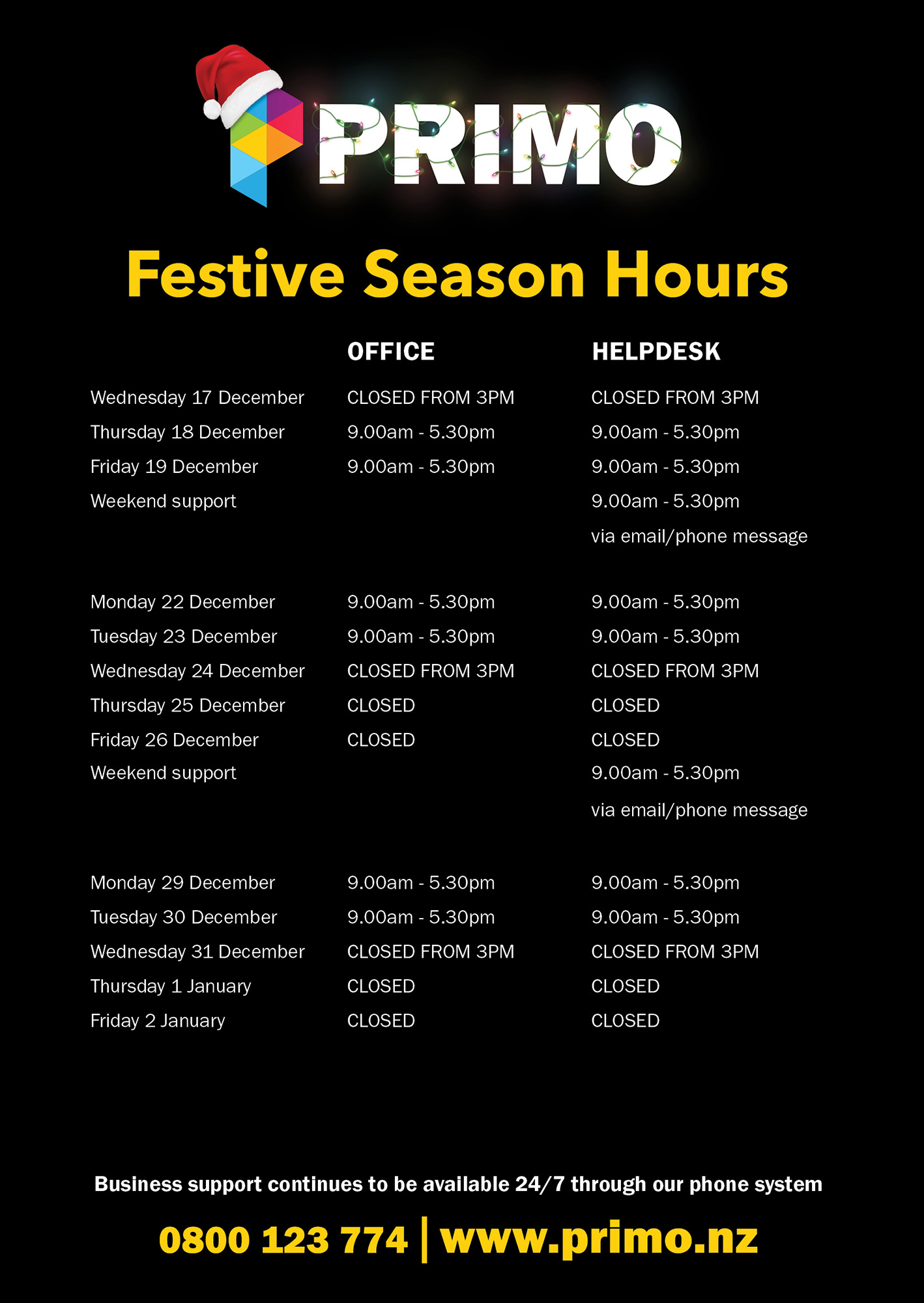 🎄 Festive Season Opening Hours 🎄